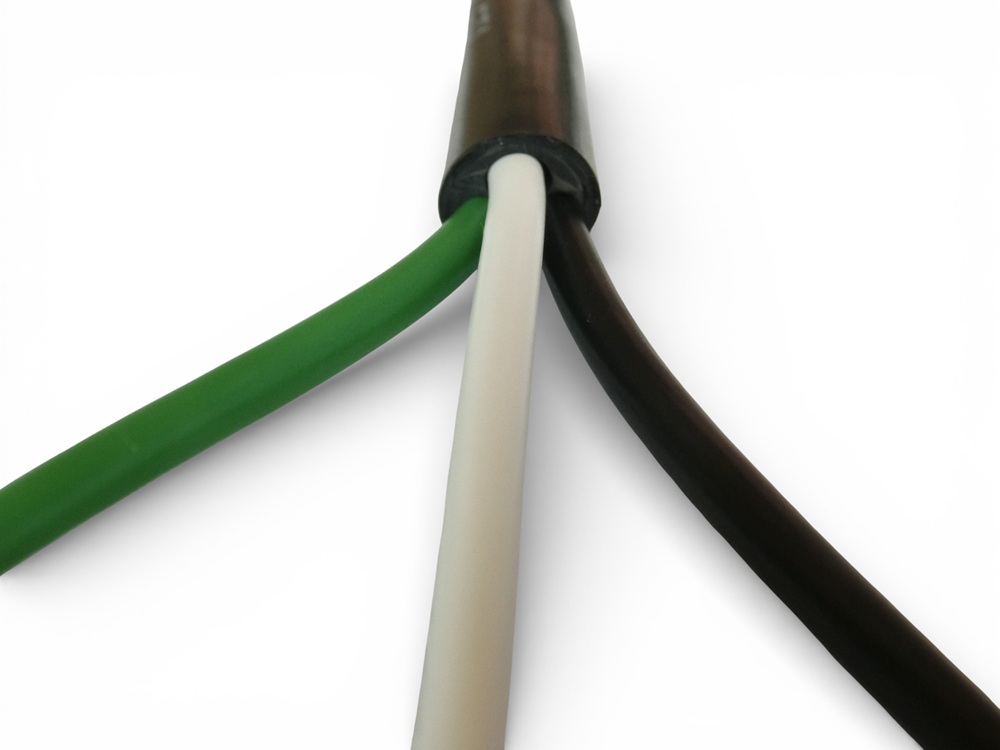 使用單價較高且符合UL標準的黑白綠電源線,有別於其它廠家使用黑白紅線路錯誤應用,將三條線路中的一條線路作為接地,但往往會造成使用者習慣性地將黑白紅線路接至三相無熔絲開關中,最終導致箱體漏電之問題。