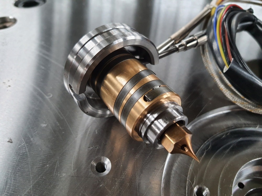 1支熱嘴且沒有分流板的應用,通常置於模具的中心位置,進澆方式分為直接進澆及料骨進澆(射膠於流道)。